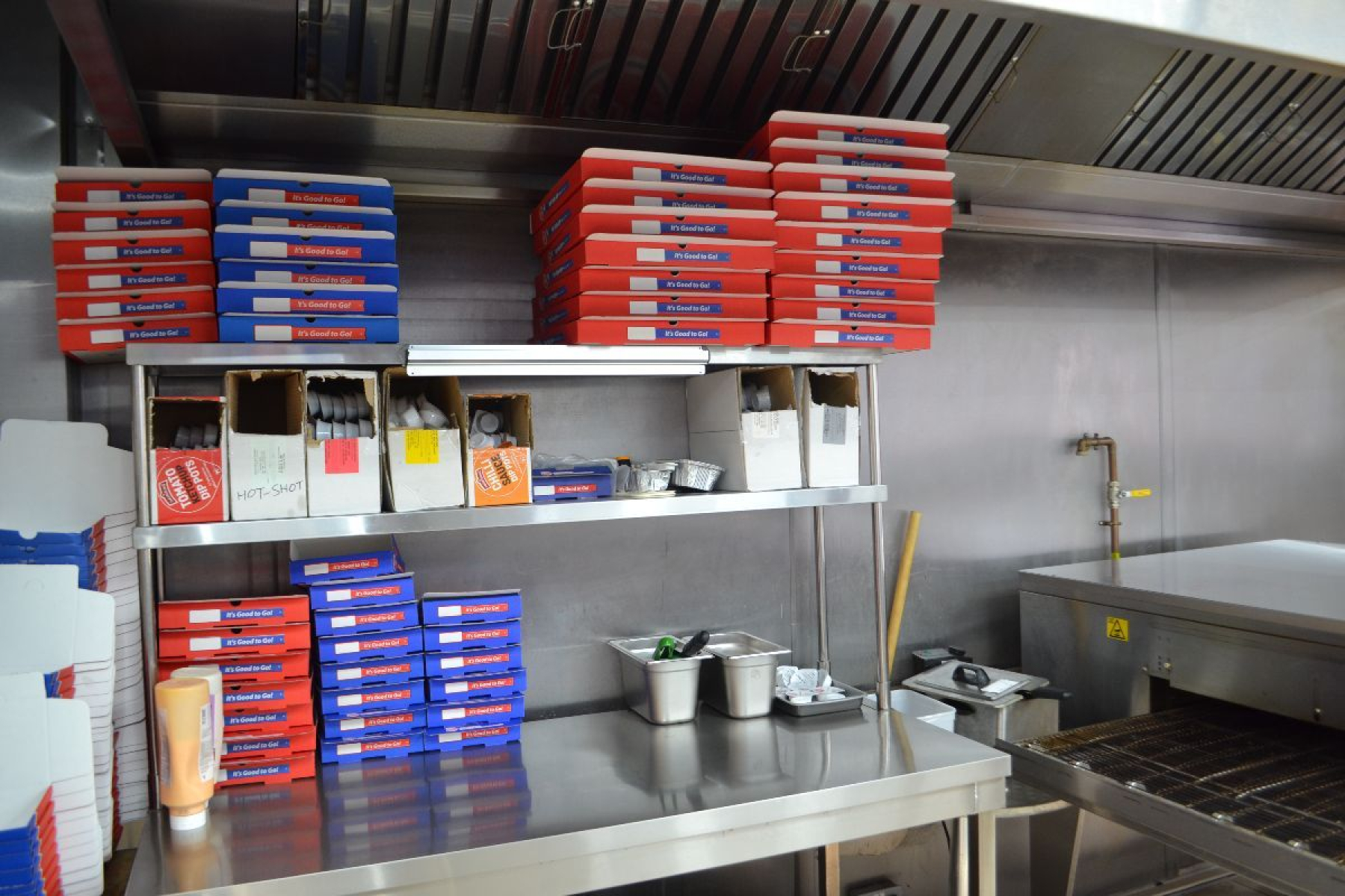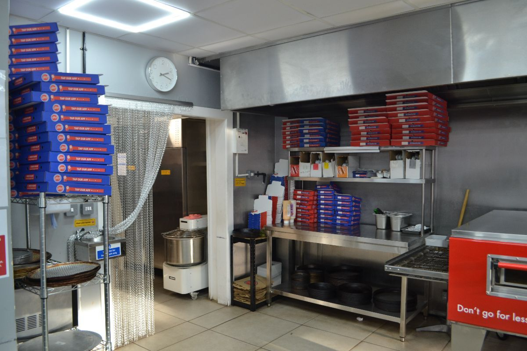 Efficient working kitchen suitable for high-volume pizza production