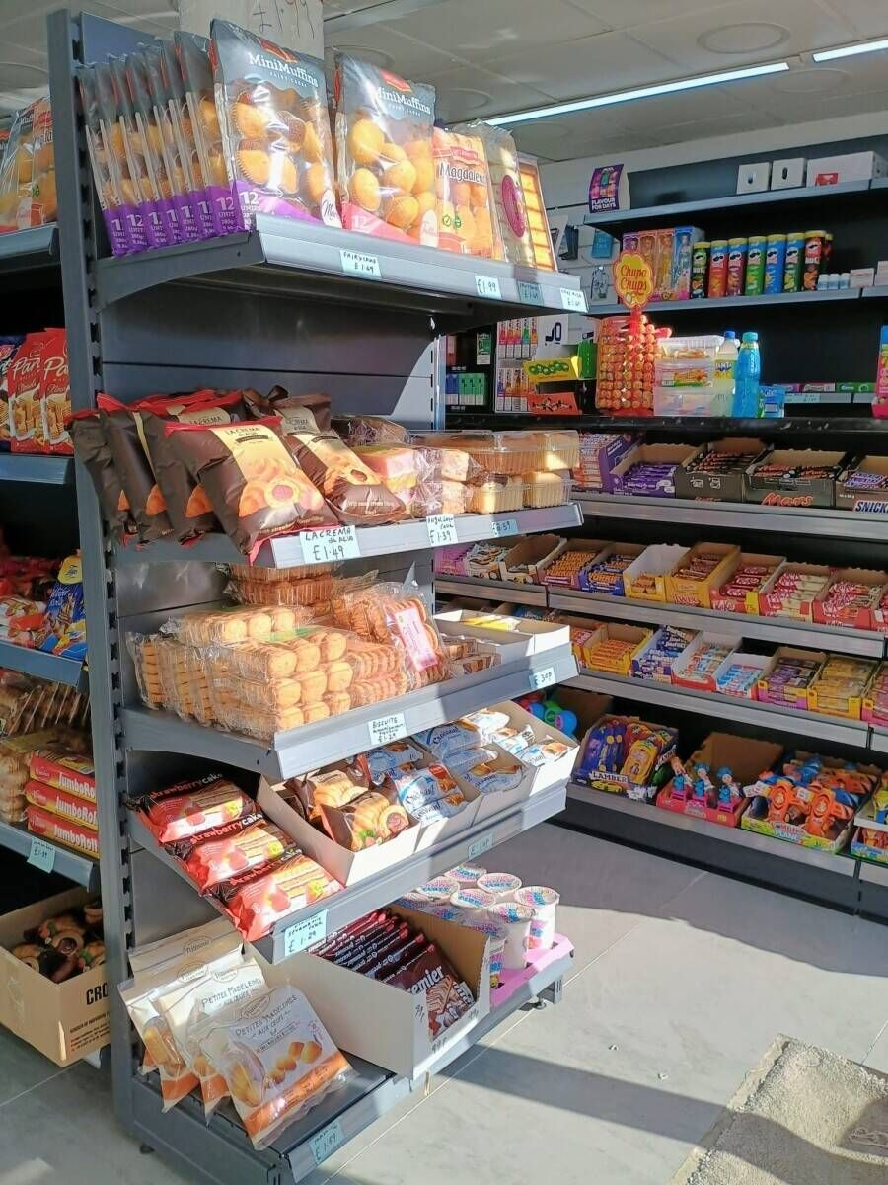 The store is bright, clean, and ready for immediate operation. It offers a range of snacks, drinks, and essential groceries, all attractively displayed on modern shelving with reliable refrigeration units for perishable goods.